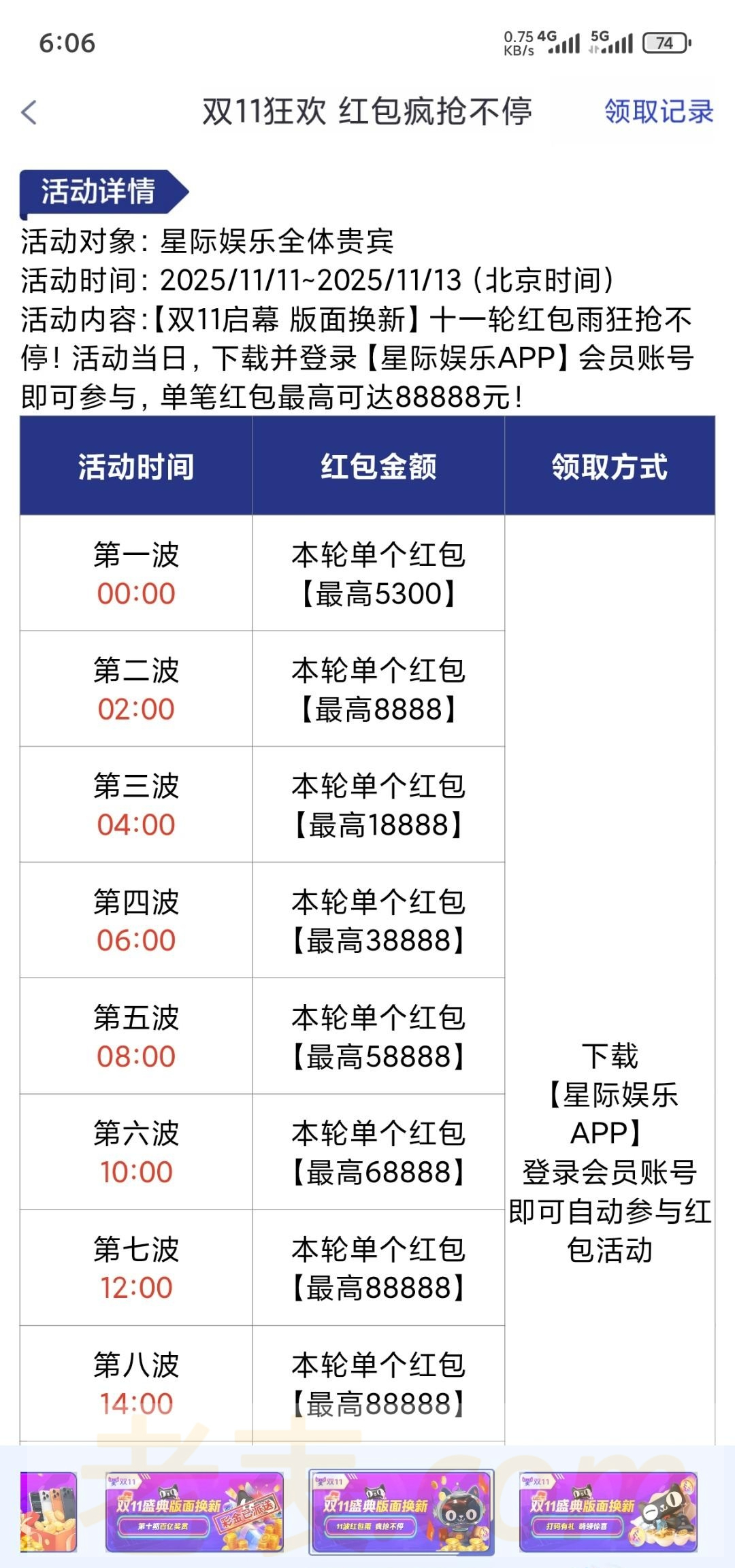 【星际053-双十一红包雨】