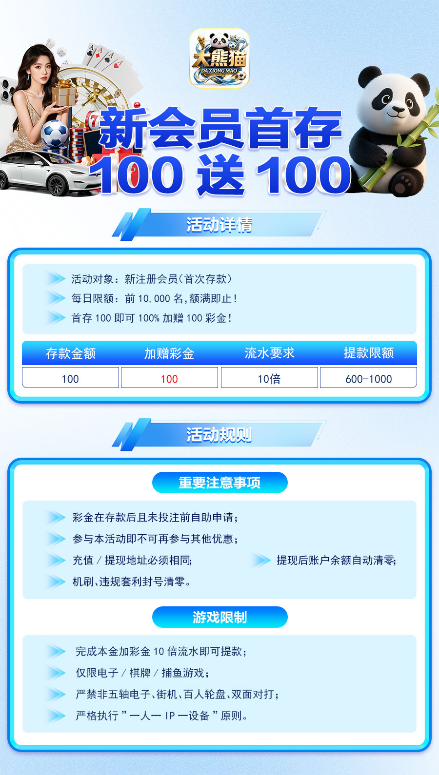 【大熊猫✅100+100】送6.66