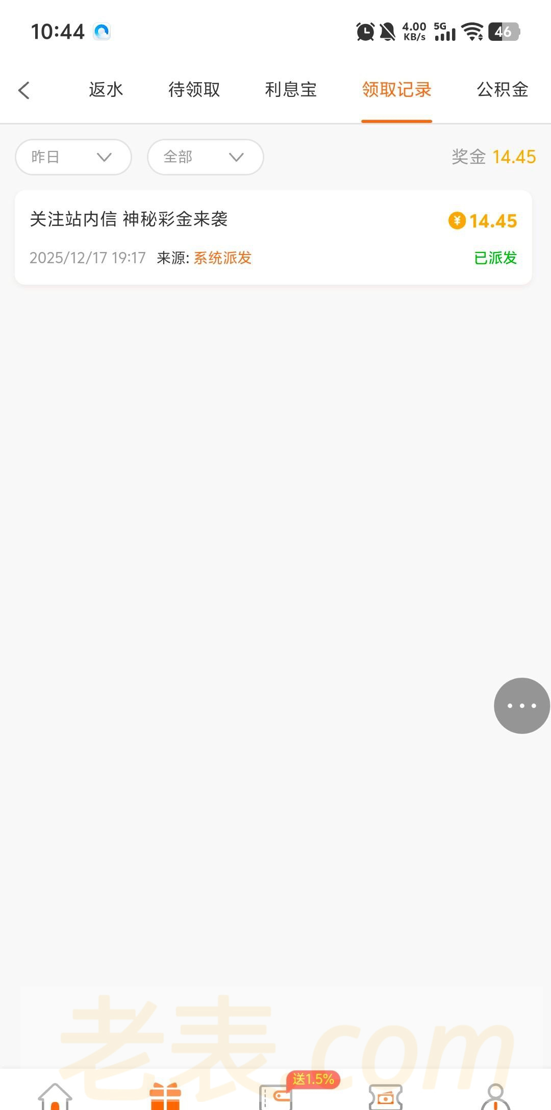 我看记录是昨天派发,今天才上号领取的,以前充过一百几十。