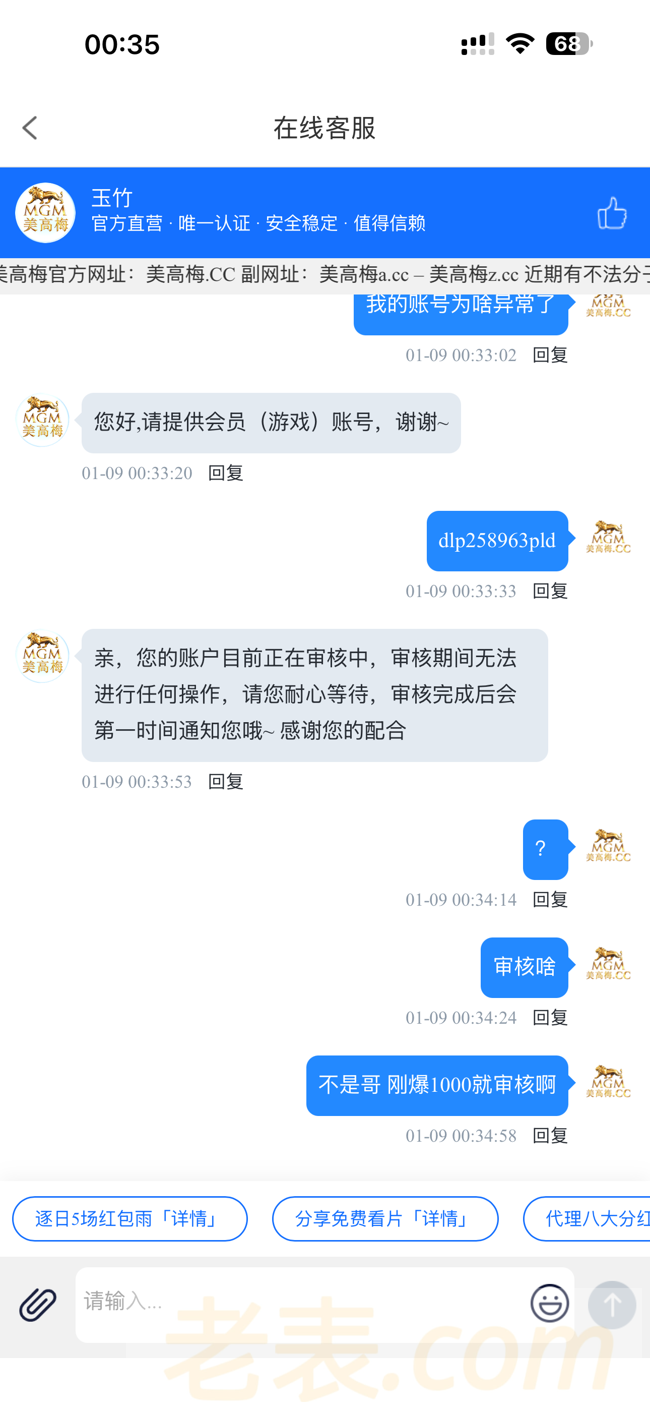 冲100刚爆了1000然后就账号异常登不进去了问客服客服说官方审核中