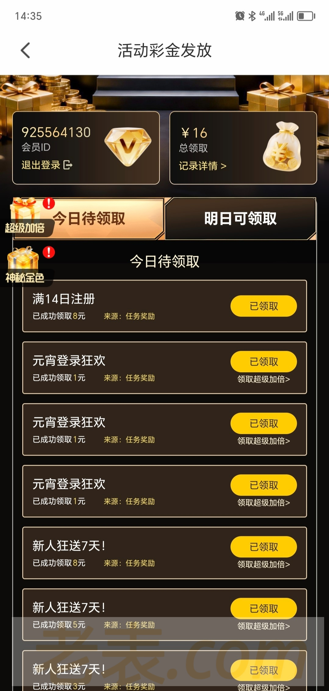 登录活动有个每日福利,输入ID就可以进去领,有就有没有就没有。