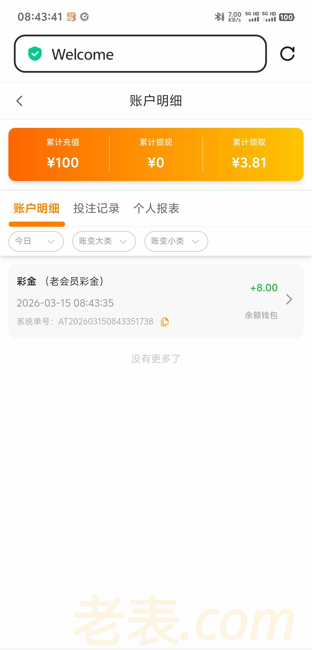 登陆账号看到送了8彩金,有账号的可以看看,之前充值过100,