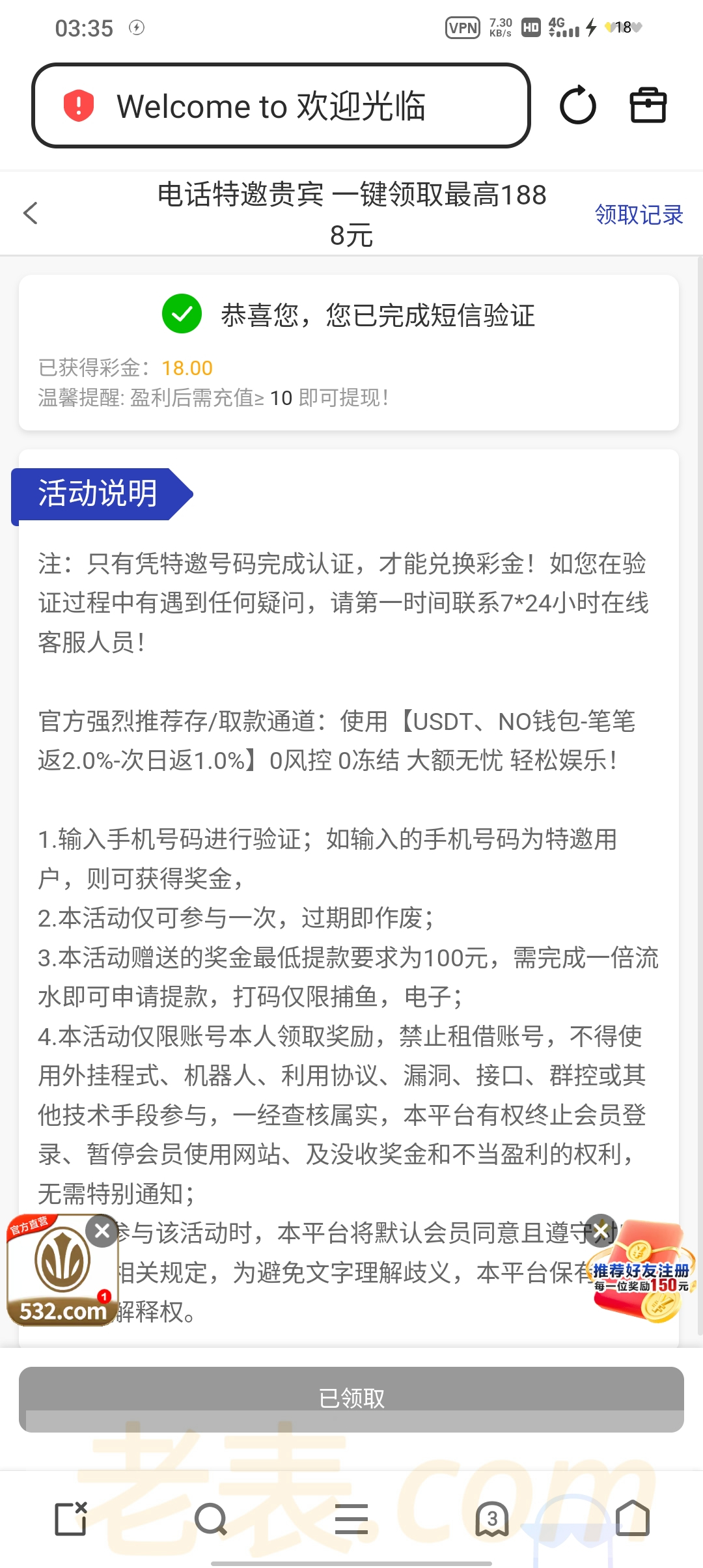 这个野鸡台还可以,没听说过被黑,玩了一两个月下了4k左右,之前的特邀重置了,领过的可以重新领取,提现需要充值10,介意无事