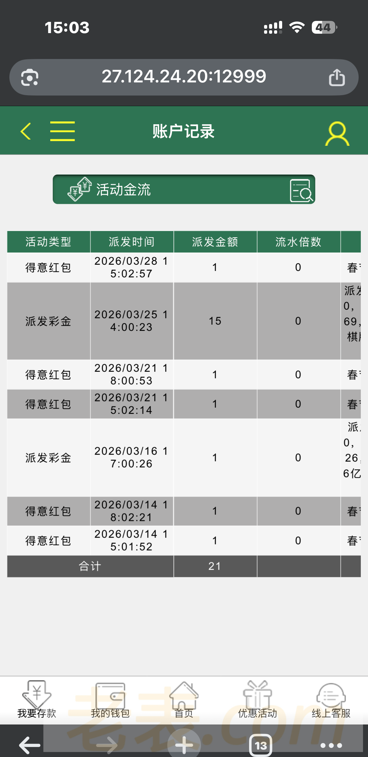 有号的自己登录看看有没有彩金,我是好几年都没充过一分的,不管你打多少流水冲多少钱,每周六抢红包都是一块!
